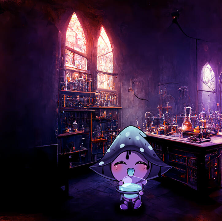 (Future Crane’s Note: Epilogue. I wrote the following in the hours after I first regained consciousness.)I awoke in what seemed like no more than a minute later, half expecting to find myself in my chamber having experienced some sort of prophetic night terror. However, as my eyes opened they were met by the stabbing rays of light. They burned as if I have never before witnessed the sun’s rise. My laboratory was caked in a thick grime of settled dust and the crumbled powder of dried reagent. The dust-covered glass shards still sent muted sparkles of concentrated light dancing subtly upon the walls. As I sat up, the inches of dust began to roll off me and my bone-dry throat reflexively let out a hoarse and broken shriek as inches from my face were the same inky orbs that I last remember gazing into right before losing consciousness. The creature answered my shriek with its own until my weakened, parched voice gave out into a chocked, hacking cough and the shriek from the creature turned to…what I can only attempt to describe as a child's giggle. I sat in silence for some moments reexamining the room. Piles of my books lay stacked among the of glass-strewn floor creating uneven spires rising from the sea of glass below. Over time it seems some of these spires collapsed, scattering piles of books, while others have been left splayed open. Each book appeared smudged with blackened handprints. The creature before me ducked behind a work table and returned moments later with an alembic filled with clear fluid as it began to clumsily dawdle back towards me. Finally my eyes began to focus and as I could look at the creature for the first time I attempted to exclaim, but my voice failed me so only a hoarse murmur barely passed my lips as recognition glacially permeated my treacle-ridden brain “you’re subject 228”.The mushroom that I was so convinced was stolen to make a mockery of my research…was walking…as if in answer subject 228 turned sharply as it lost balance and smacked the brim of its mushroom cap against a nearby desk. Murky black droplets flew from the gills under the cap splattering across all nearby surfaces and they ricocheted off the desk corner. The sound was…a unique one. The reverberating echo created a hollow note that carried around the room. In its startled state, it dropped the alembic as the crystalline note of shattering glass onto stone broke throughout the otherwise deathly silence that hung over the room. Immediately, what could only be described as black tears started to issue in a steady stream down its face and it began to haphazardly run at me. Still too bewildered to move, I sat there as the creature loped toward me and embraced me. It continued its high pitched shriek and the stream of inky tears though upon a cursory look no harm seemed to have been done to it. In a daze, I pet its cap, still not fully convinced I wasn’t about to arise with a start in my bed chamber. After our first encounter, it took several rounds of self-experimentation (noted in journal 43a.iic.3x, the one with that smells strangely of rye) for me to put the pieces back together and how I am here writing this now, but it would seem, in the end, my experiment has been a success. It is only a shame that my formulae have been rendered indecipherable in my current state. My books likewise are rife with ink stains that run through my them like taunting, tenebrous voids, challenging me to fill in these blank sections lost to time.I’ve taken to calling subject 228 “Bonk” because of the noise it invariably makes as it ricochets off various surfaces when it moves around. It seems the mushroom brim acts as a sort of impact absorber and thus, while making it difficult to hold delicate equipment, does not actually experience pain for these constant collisions despite its constant overreactions to each such occurrence. It would seem likely I have been out longer than I suspect due to the state of my lab, but how long exactly have I been asleep? Surely the world could not have changed that much...